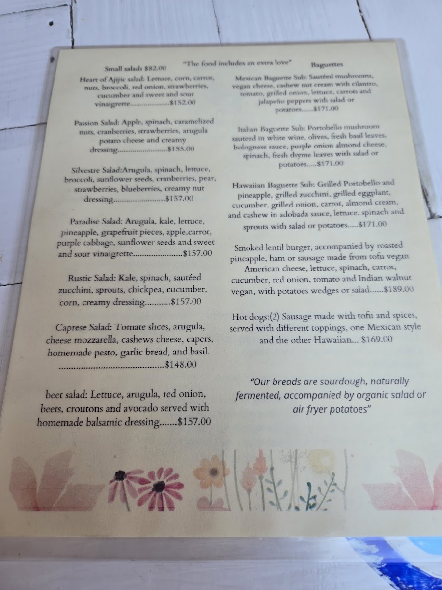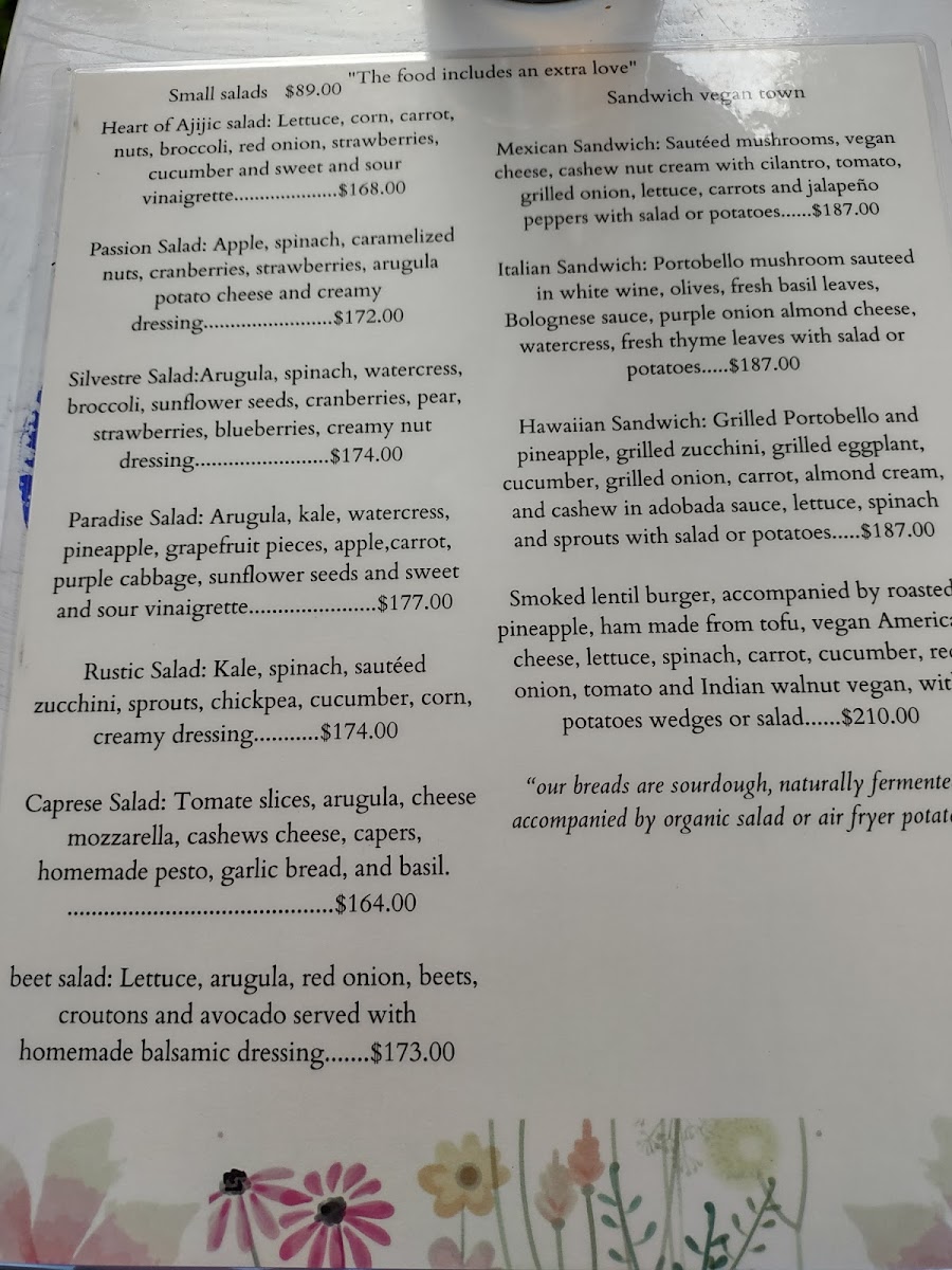 Vegan Town’s menu at C. Ignacio Zaragoza 35 in Ajijic is a vibrant celebration of plant-based creativity, seamlessly blending traditional flavors with modern twists. The Mexican Baguette Sandwich stands out with its hearty, flavorful fillings, while the Hawaiian Sandwich offers a tropical, refreshing contrast that delights the palate. For lighter options, the Passion Salad and Ensalada Pasión showcase fresh, crisp ingredients with bright, zesty dressings, and the Ensalada Silvestre adds a rustic, earthy touch. Sandwich lovers will appreciate the variety, from the classic Baguette Italiano to the inventive Baguette Mexicano Y Pizza, each crafted with care and generous fillings. The Hambrguesa Vegana satisfies those craving a satisfying, juicy alternative to traditional burgers, and the simple Baguete is perfect for a quick, wholesome bite. Sweet endings are equally thoughtful, with desserts like the aromatic Pastel de Cardamomo leaving a memorable impression. Across the menu, the balance of textures, colors, and flavors highlights the restaurant’s commitment to quality, creativity, and accessibility, making every visit a flavorful journey through vegan cuisine.